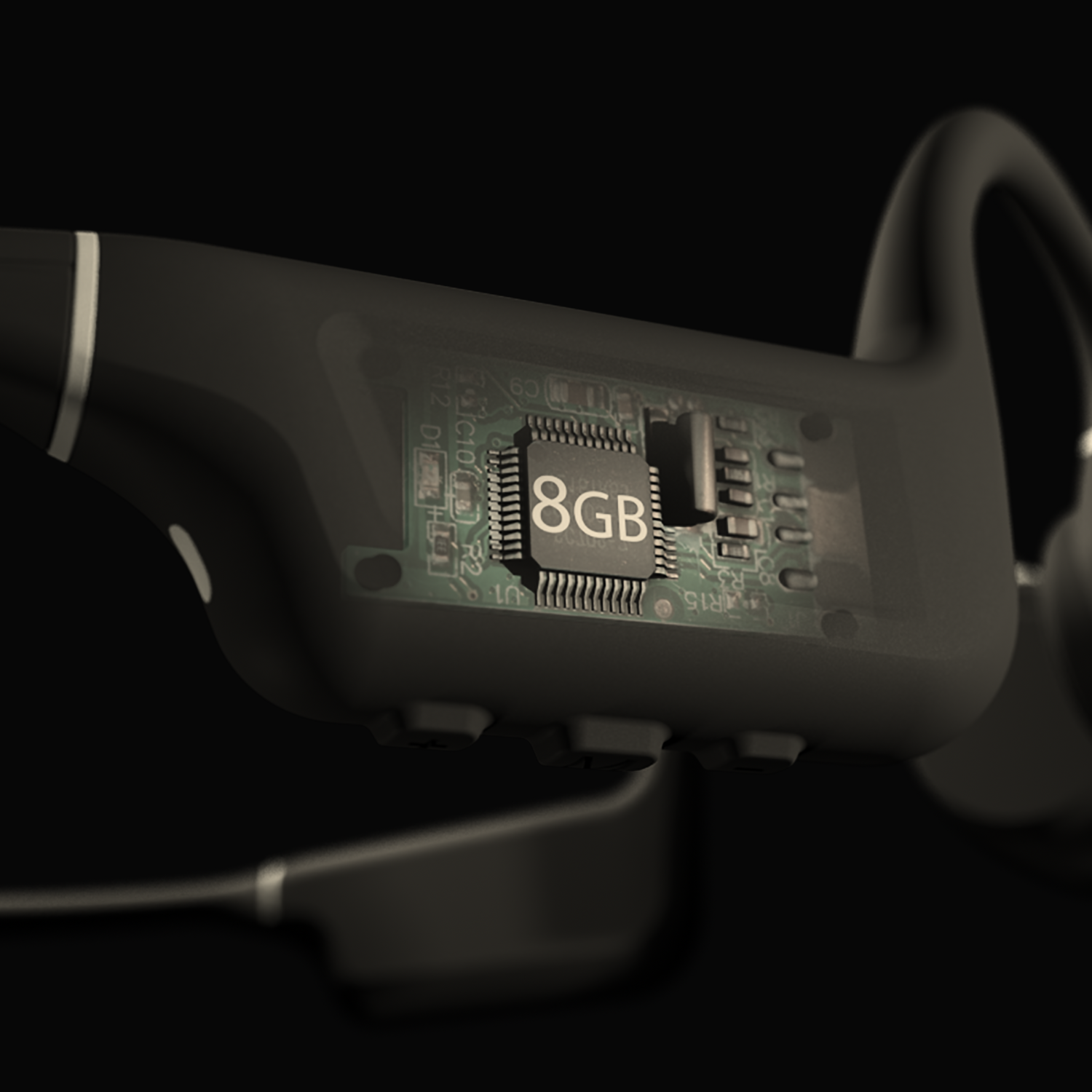 Take your tunes underwater with 8GB of in-built MP3 storage. Enough space to rapidly transfer and store a playlist of up to 3000 MP3 format songs. Simply double-press the multifunction button to interchange between MP3 and Bluetooth mode, then ditch your phone and enjoy your music, whether it be underwater or on the trail.